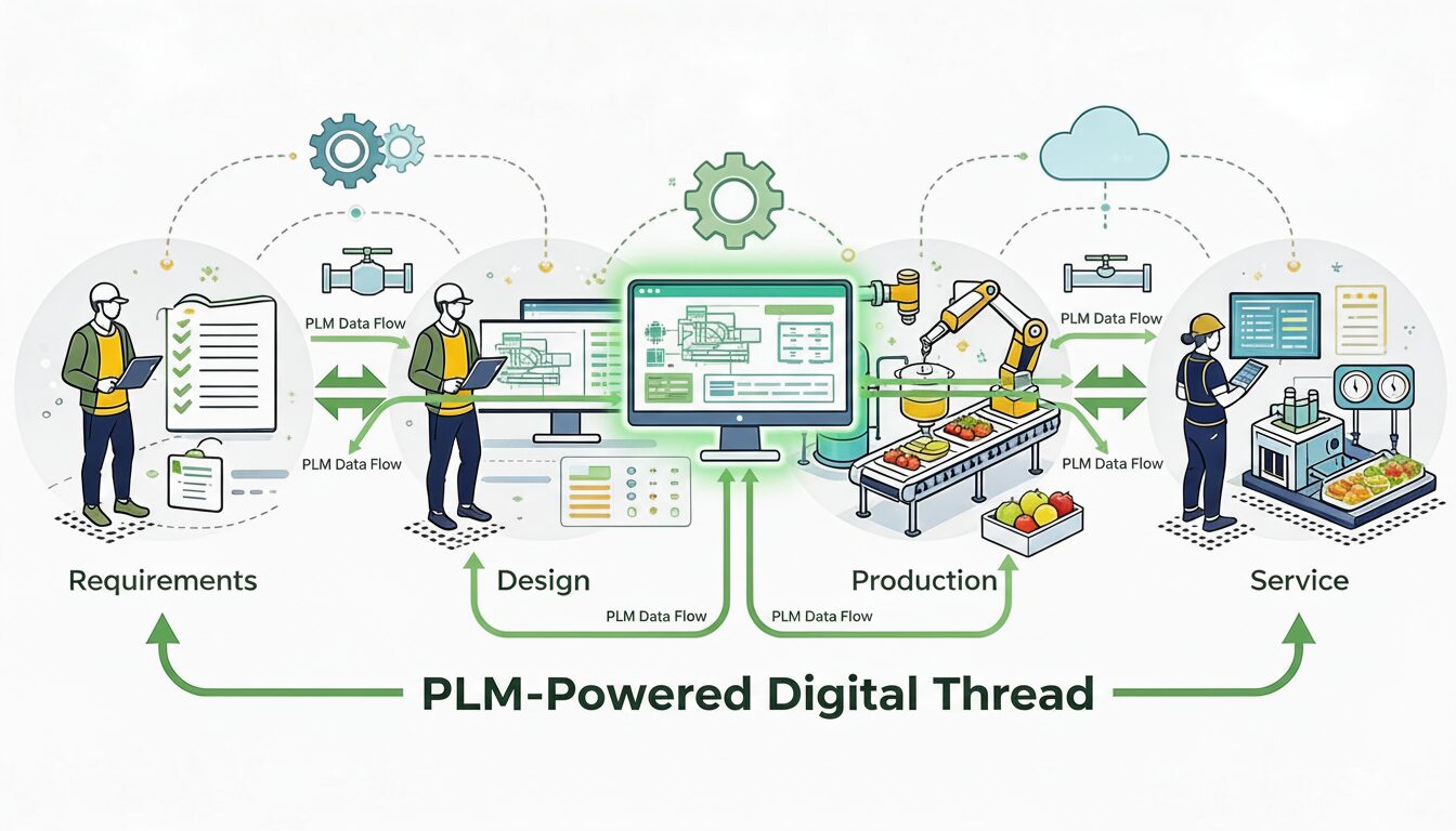 Without PLM, data exists – but it’s fragmented. Requirements live in documents. Designs or recipes in local tools. Manufacturing and service data in ERP. Knowledge in people’s heads. The digital thread snaps every time information crosses a boundary.