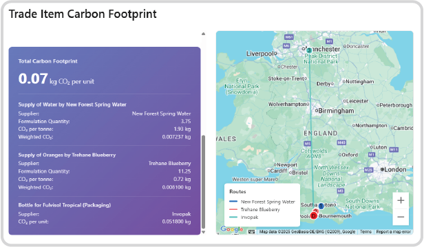 Because the system holds the precise locations of all Business Units, Sub-Business Units, and Suppliers, Fulvisol automatically calculates accurate transit CO2 emissions for ingredient and product shipments.