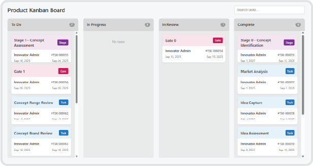 Easily assign Stages and Tasks to specific owners across functions, ensuring crystal-clear accountability and optimal resource use.